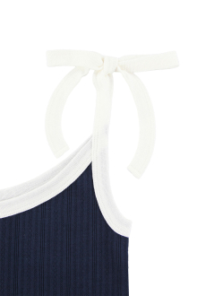 肩紐はリボンで結ぶデザインなので、長さの調整も自由自在。スタイルに合わせてバランスよく着こなせます。