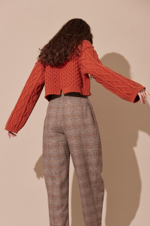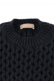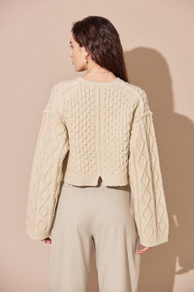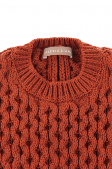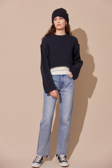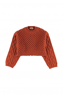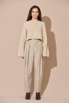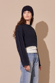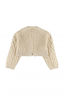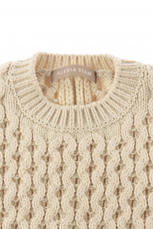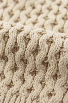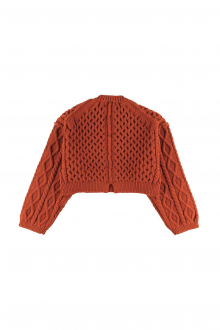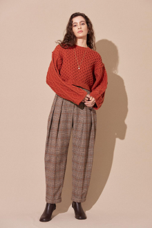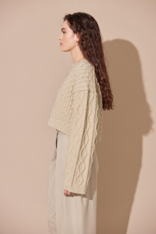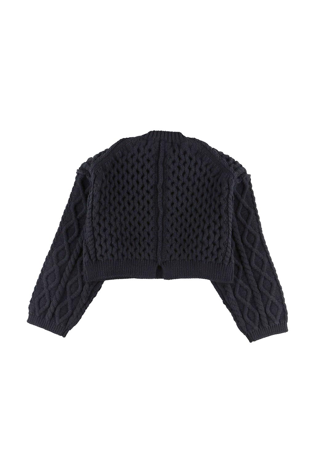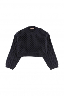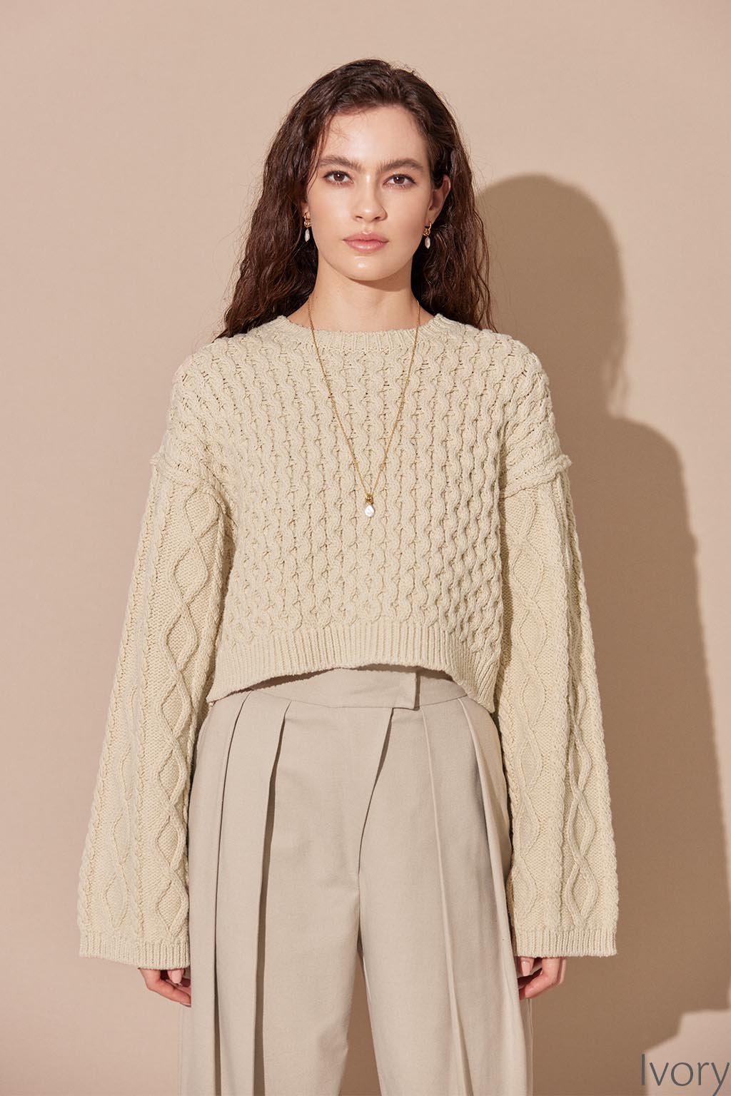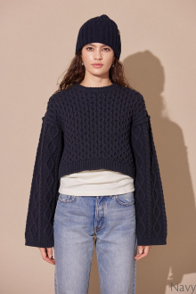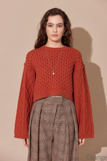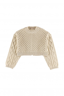 アラン柄の編み目が温かみのある雰囲気を演出する、ニットトップス。