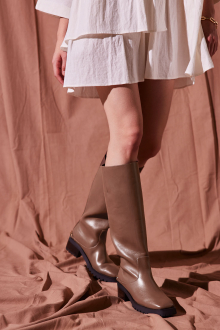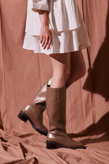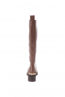 存在感のあるゴールドのバックチェーンが映えるロングブーツ。