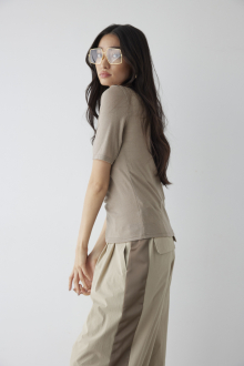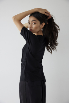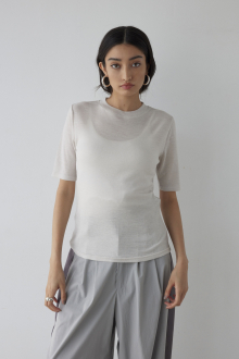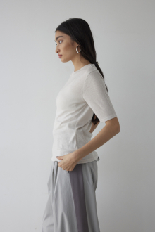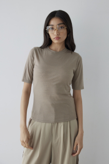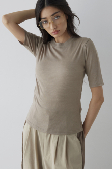 上品質WOOLの柔らかな生地が肌触りの良さを演出する、ALEXIA BASICシリーズの5分袖Tシャツ。