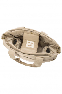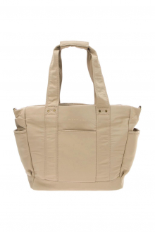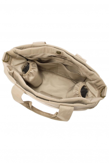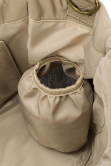 裏地には撥水加工が施され、ペットボトルや哺乳瓶などを固定し収納できる2つのホルダーや、小物も整理しやすい複数のポケットを完備しています。