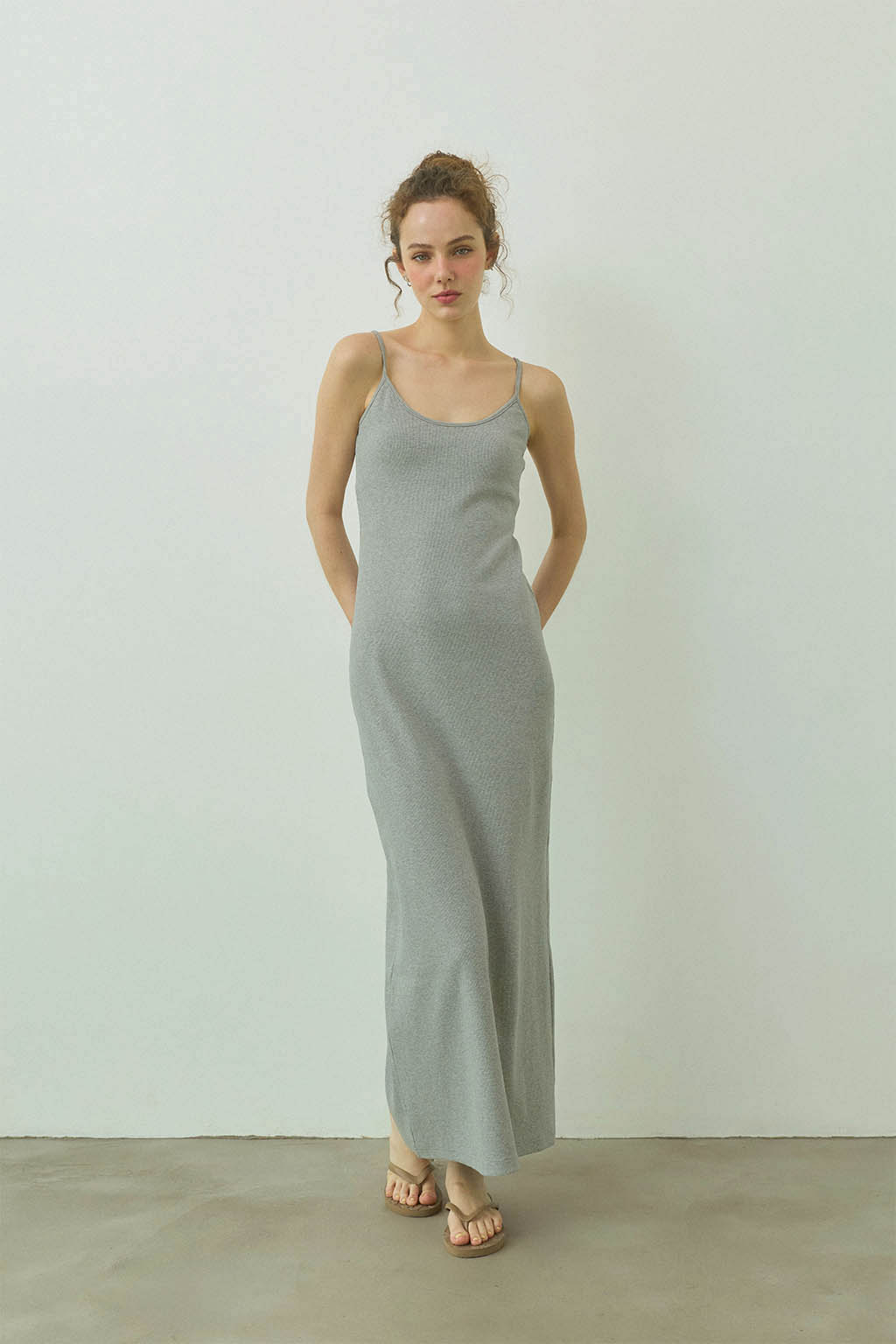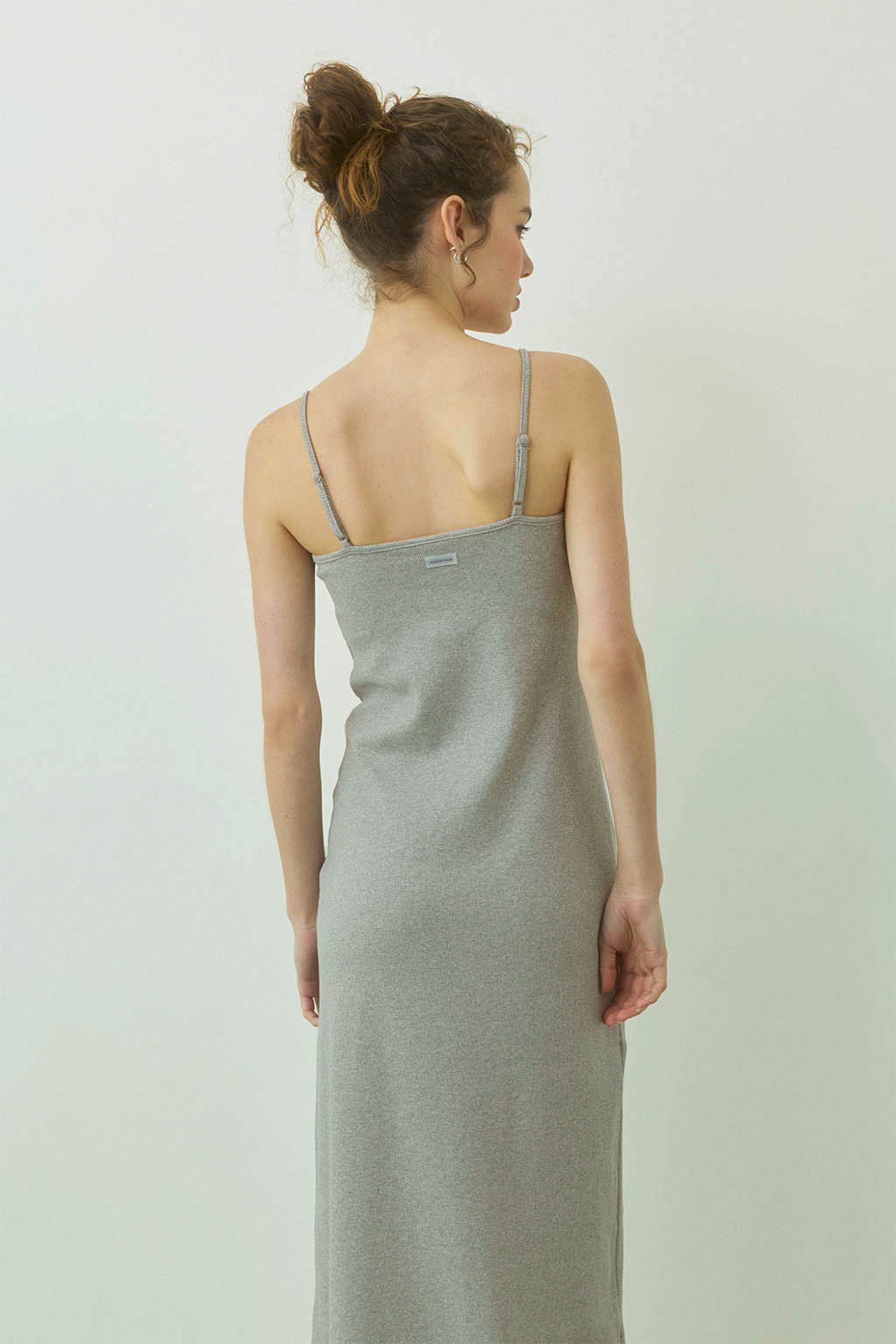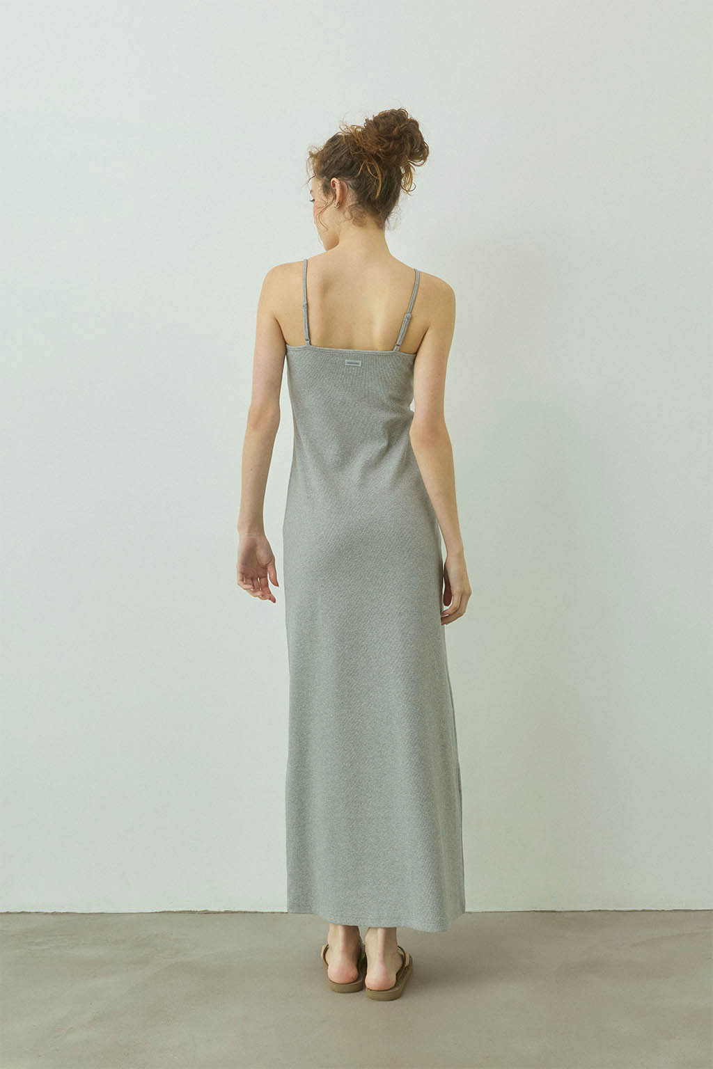 取外し可能なパッド入りのリブロングワンピース。