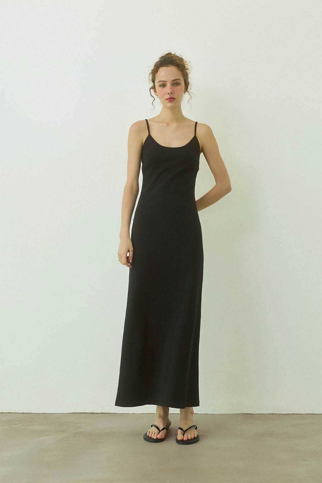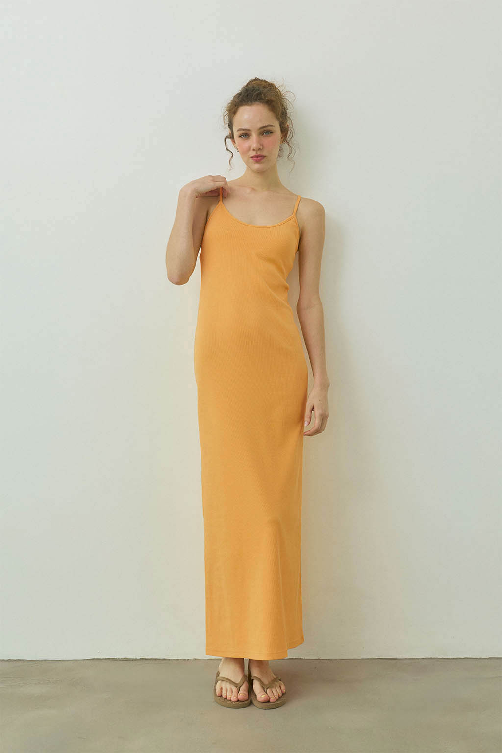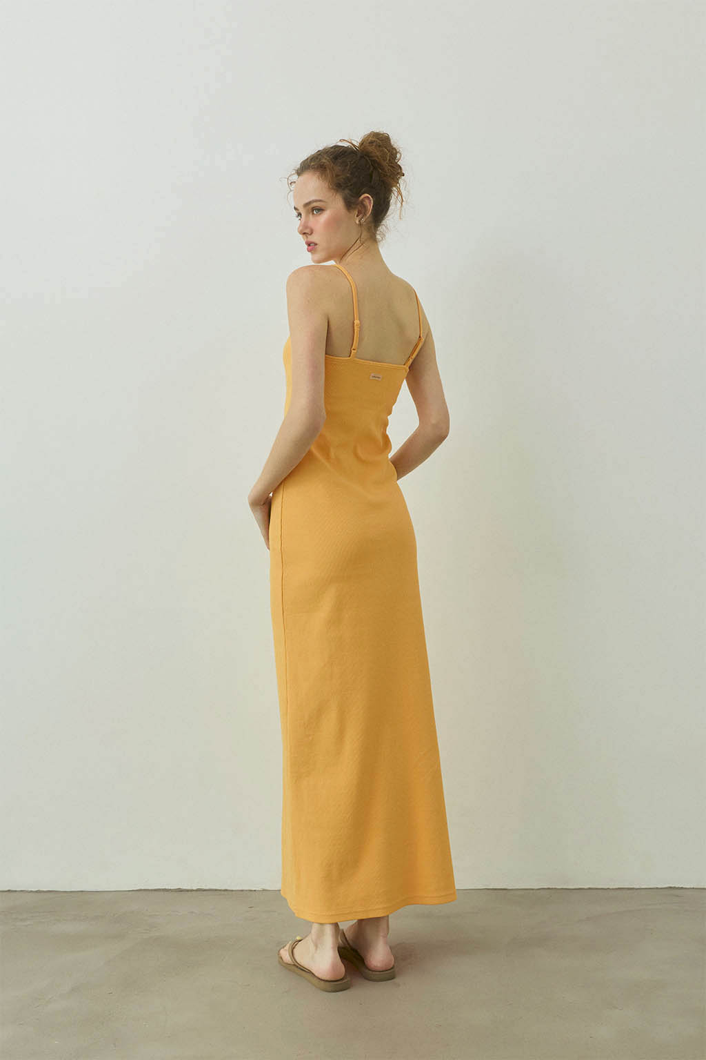 取外し可能なパッド入りのリブロングワンピース。