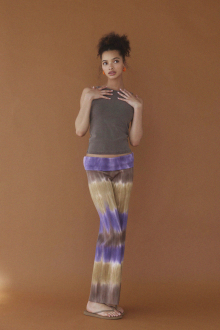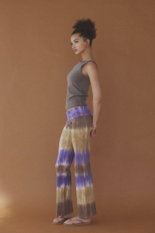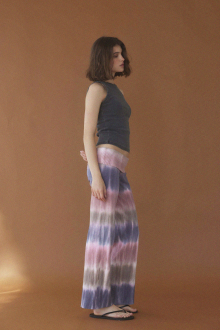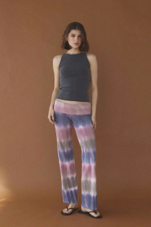 多色使いの段染めが清涼感を漂わせるリブパンツ。
