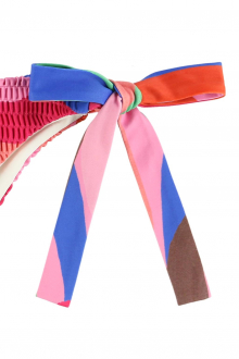 The ribbon has a strong presence that draws the eye upward, and the cut makes the hips look higher. This bottoms can be worn reversible.