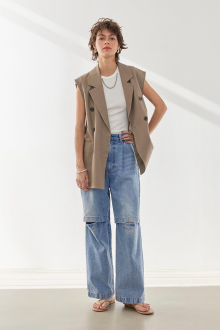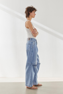 トレンドのカットアウトデザインが魅力のデニムパンツ。