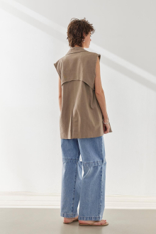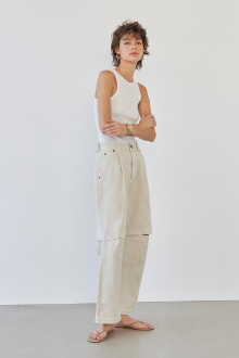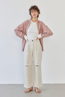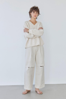 開きすぎず、狭すぎないスラッシュの空き具合で、品よく大人カジュアルなスタイリングに。
