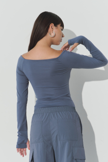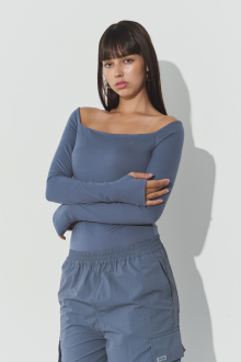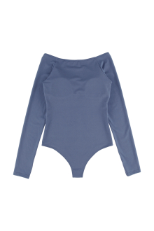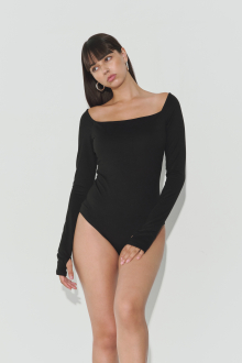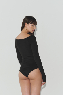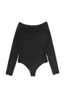デコルテラインを美しく魅せるネックラインが特徴のパッド入りボディースーツ。