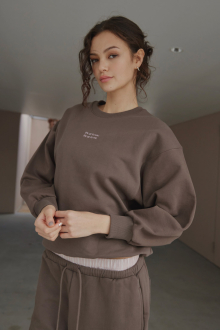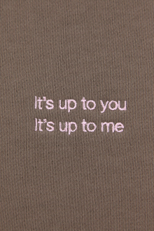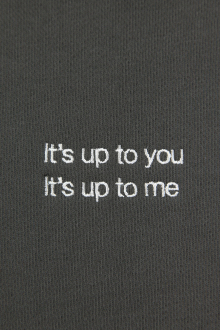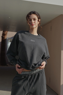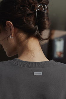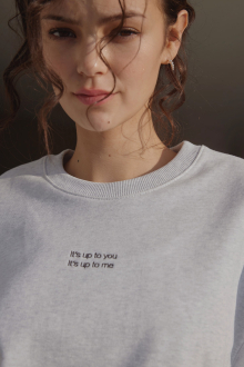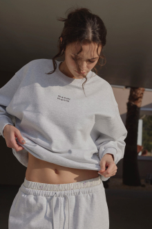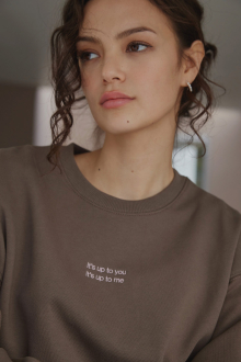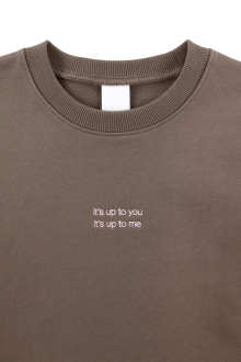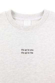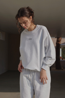 胸元に施されたメッセージ刺しゅうがアクセントになるスウェットトップス。