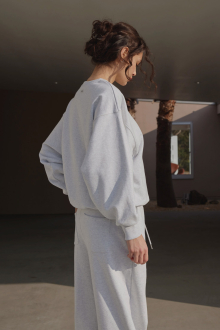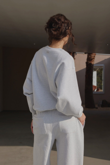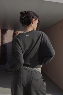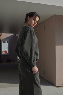 裏毛素材を使用した肉厚な生地で仕立てており、大人カジュアルな印象に。