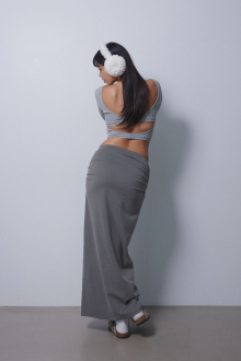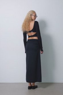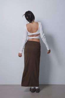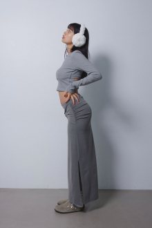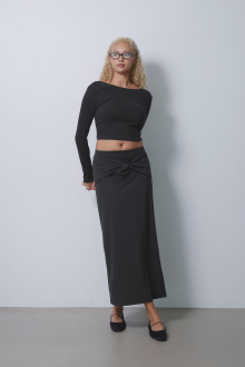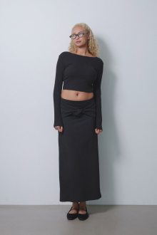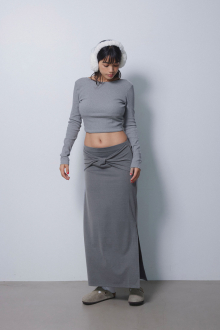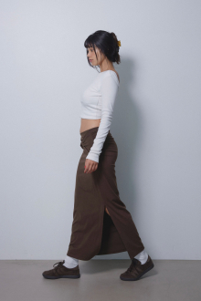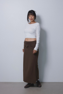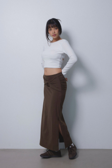 フロントのツイストデザインがスタイリングにニュアンスを演出するスカート。