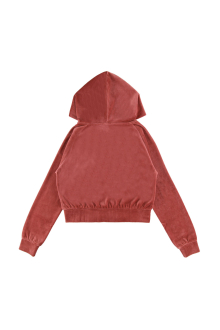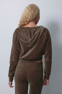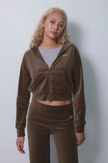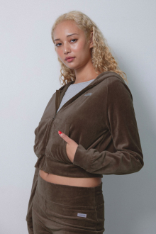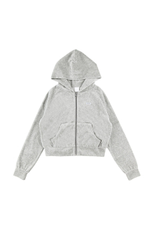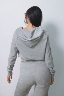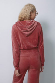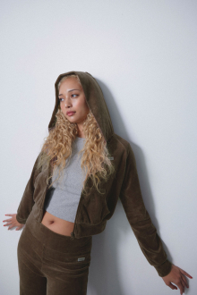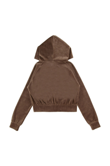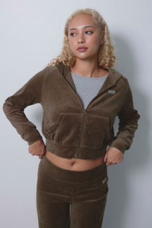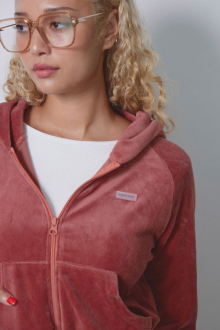 上質な光沢感のあるベロア素材を使用したフーディー。