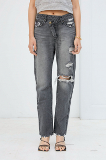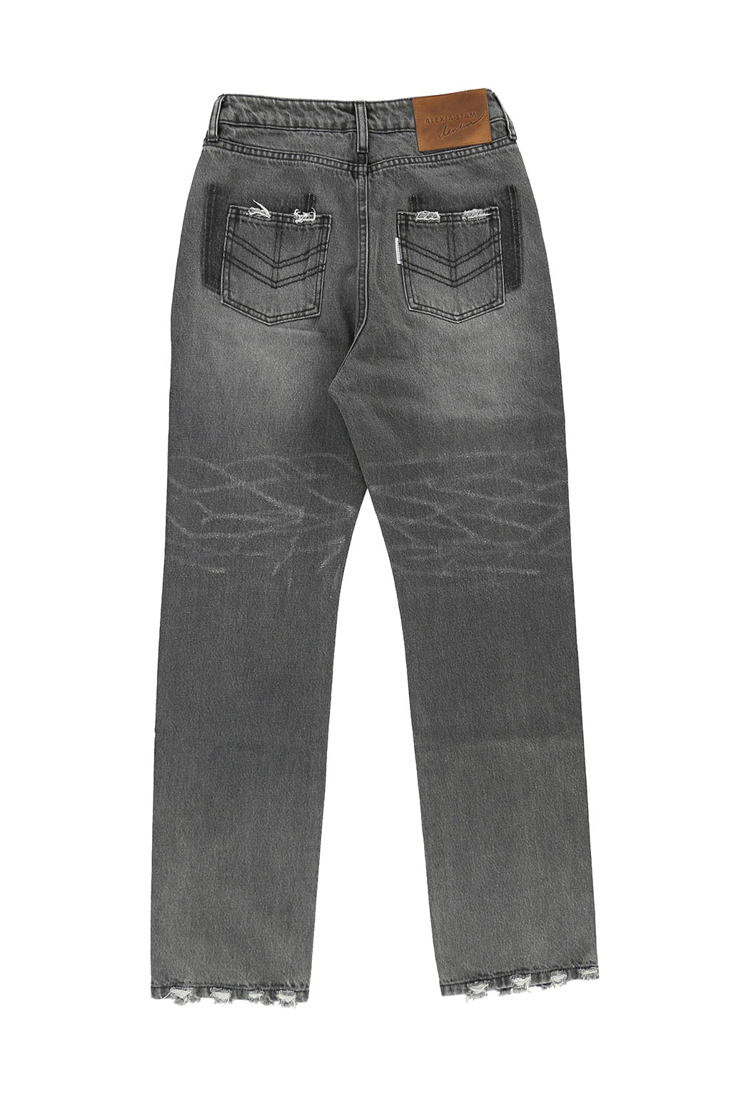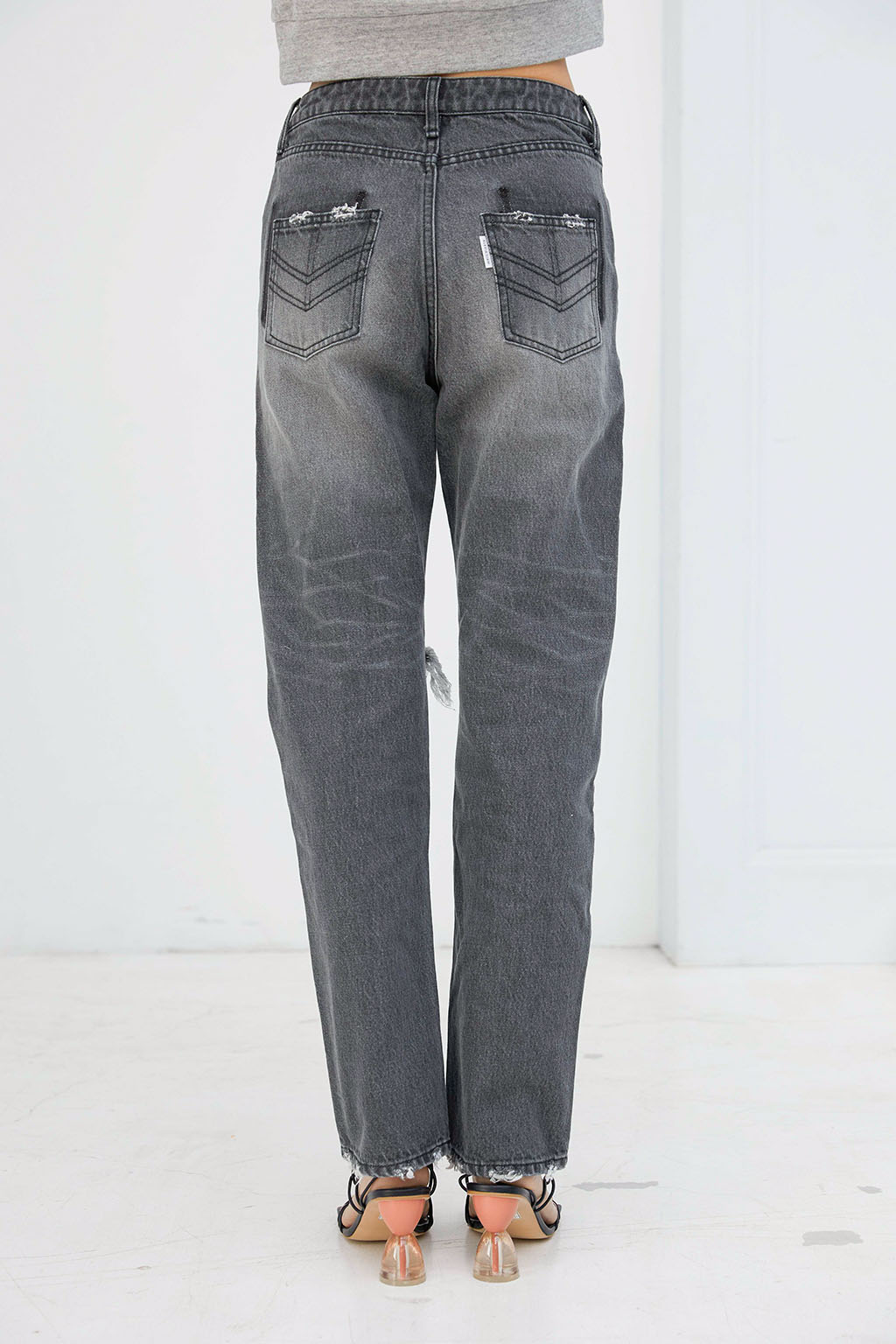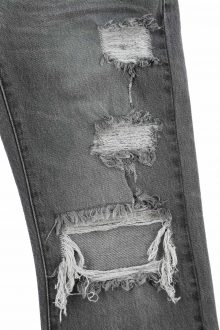 ハードなダメージや色落ち加工で、ヴィンテージライクに仕上げたデニムパンツ。