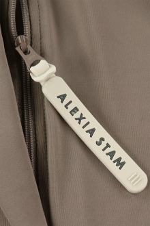 ALEXIA STAMのロゴが刻印されたバックネックのファスナーで、1人でも着脱が可能です。