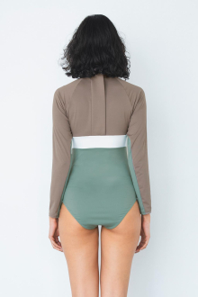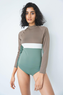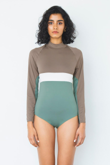 アンダーの切替えデザインでスタイルアップ効果が期待できる、大人用のラッシュワンピースのAlana(アラナ)です。