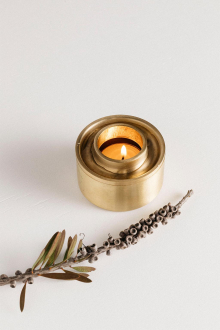 真鍮の本体、ラベンダーのエッセンシャルオイル、オーストラリア製のオーガニック蜜蝋を100%使用したキャンドルのセット。