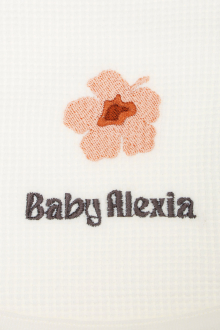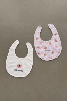 総柄のガーゼ生地と刺しゅう入りワッフル生地を組み合わせた、2種のベビースタイセット。