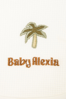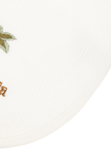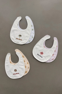 総柄のガーゼ生地と刺しゅう入りワッフル生地を組み合わせた、2種のベビースタイセット。
