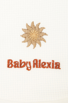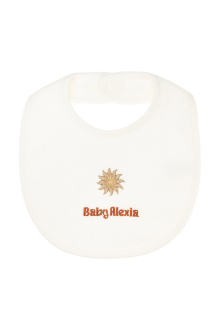 総柄のガーゼ生地と刺しゅう入りワッフル生地を組み合わせた、2種のベビースタイセット。
