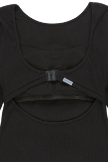 程よく身体にフィットするリブ素材を使用し、柔らかな着心地と美しいラインを両立。