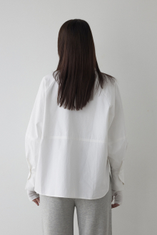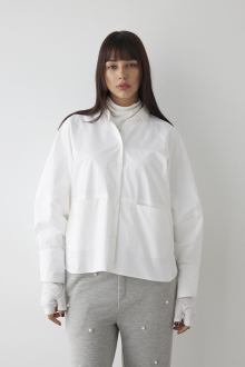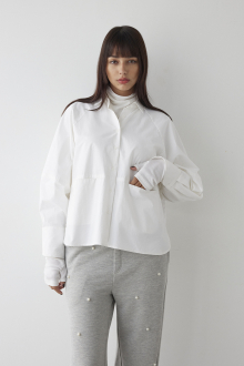 ウエストの切り替えを利用したポケット付きバルーンシャツ。