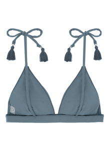 ストラップにタッセルがついた、トライアングルビキニトップのBrooklyn Indigo(ブルックリン インディゴ)です。