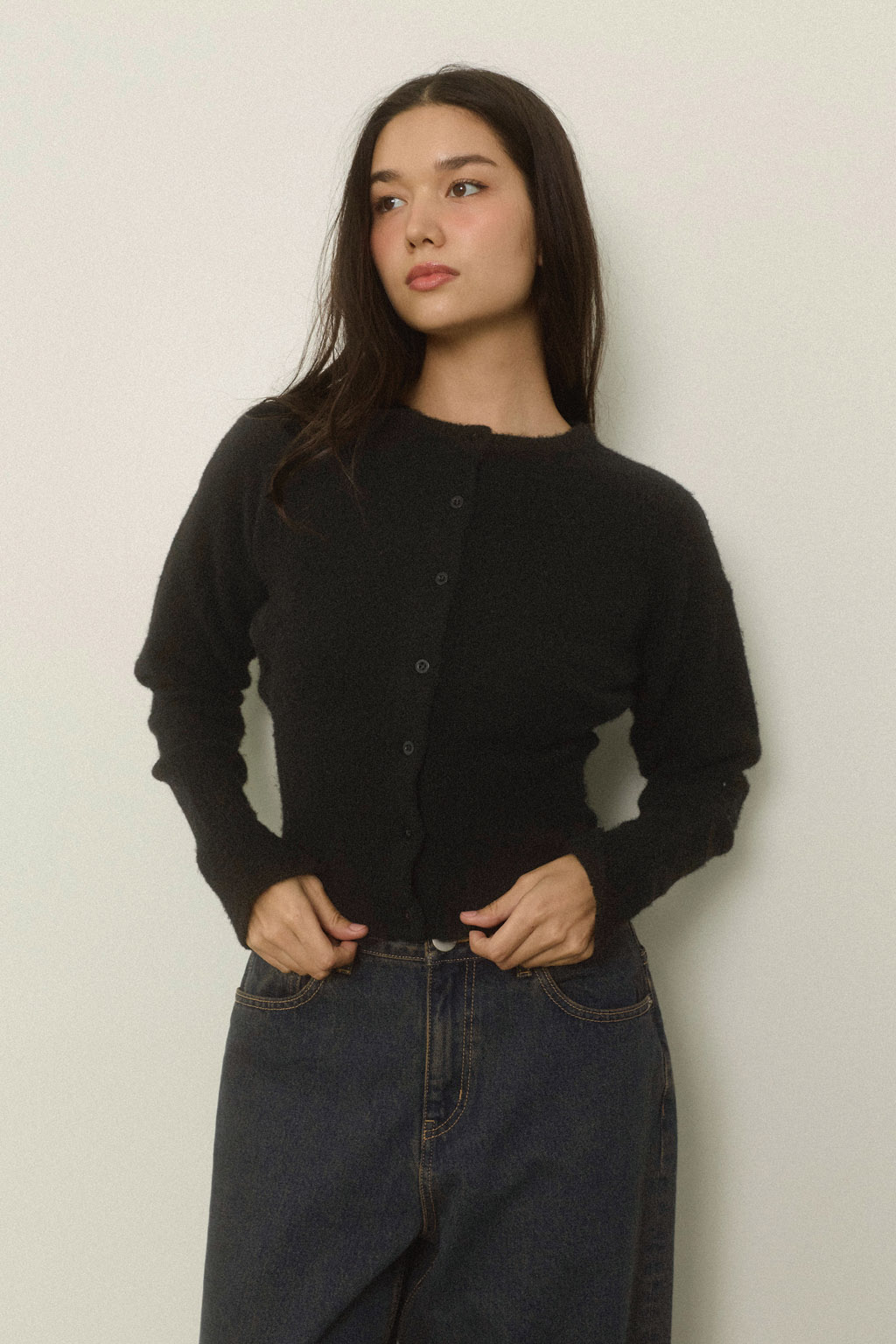 コンパクトな丈感がトレンドライクなニットカーデ。