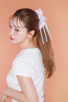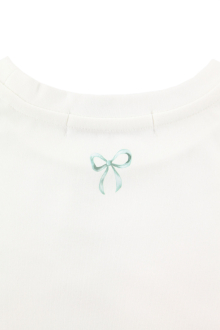 バックネックにもリボンのワンポイントをプラスし、後ろ姿も愛らしい印象に。