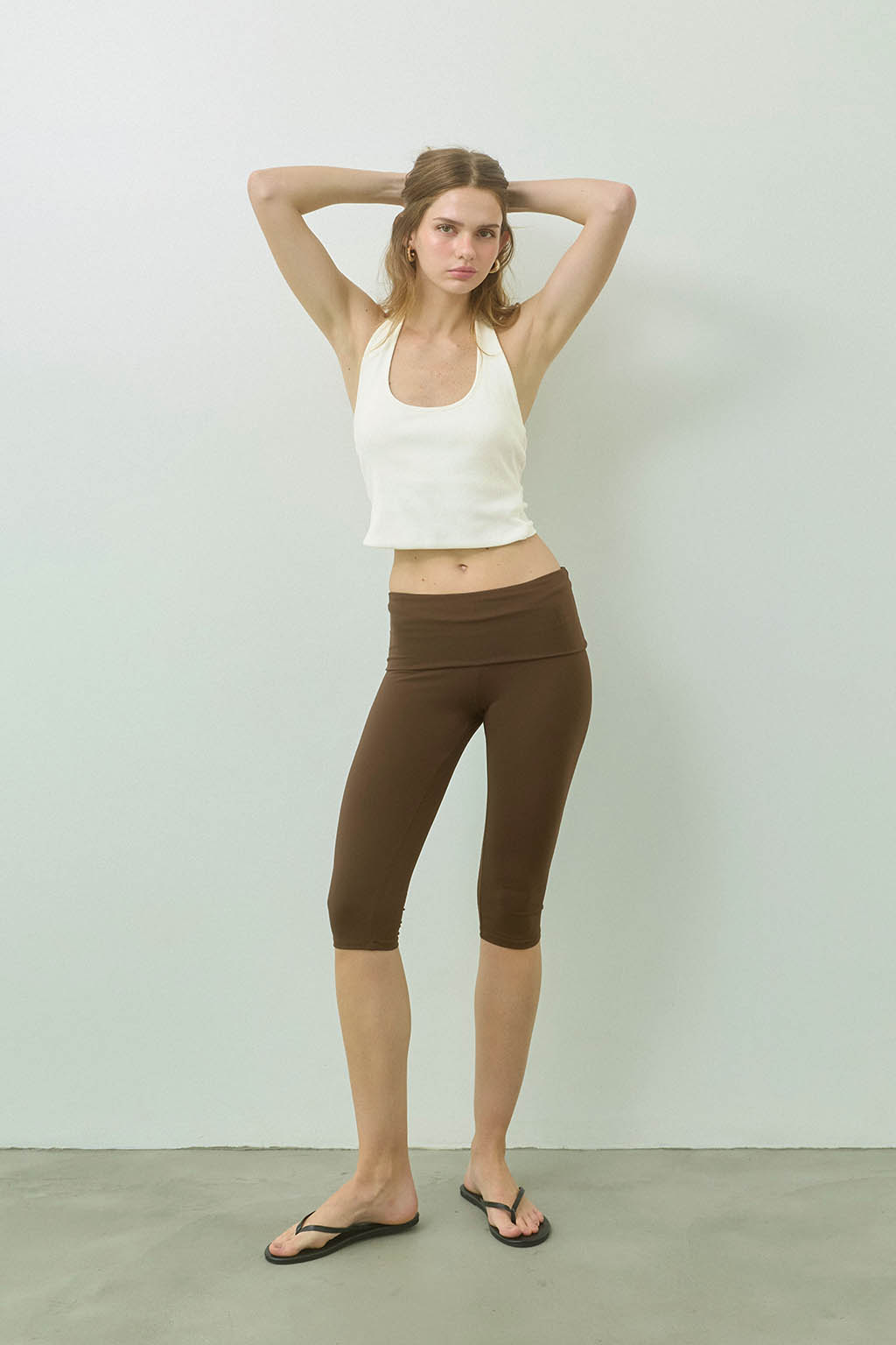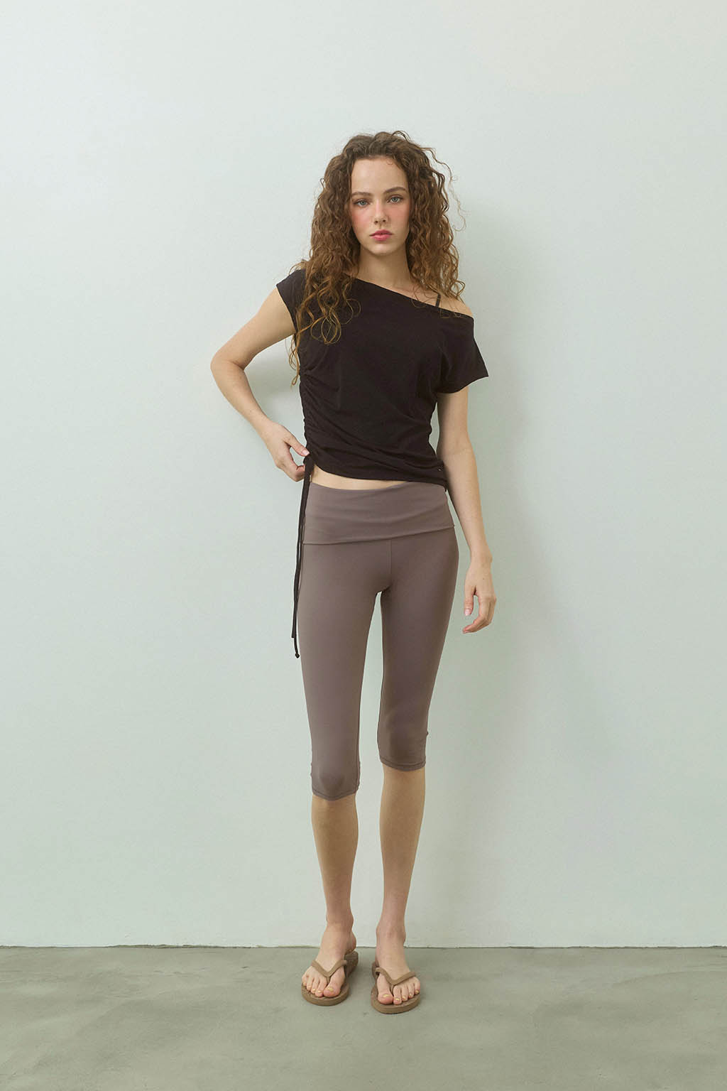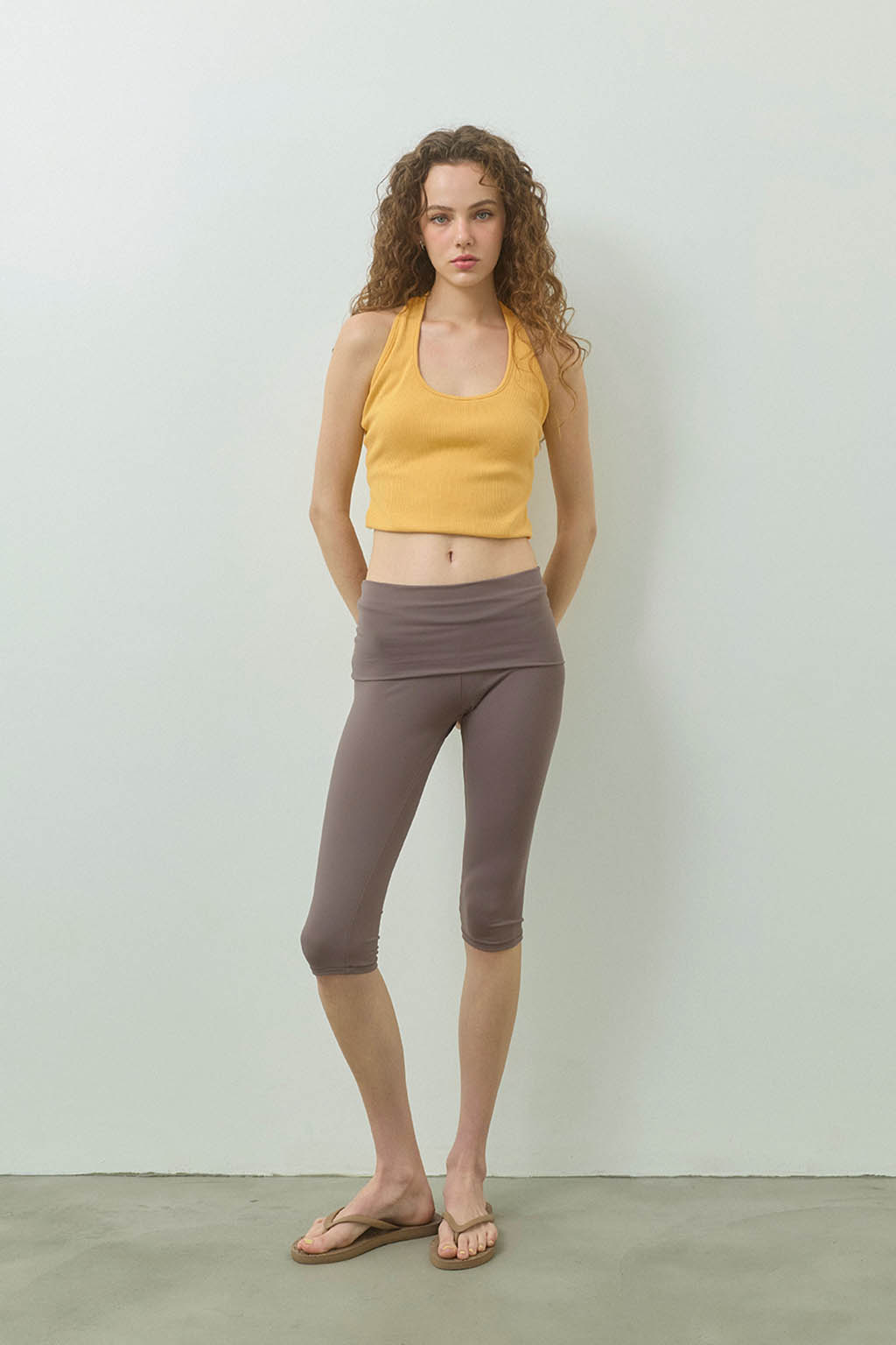 すっきりとしたレッグラインを演出する、カプリレギンス。