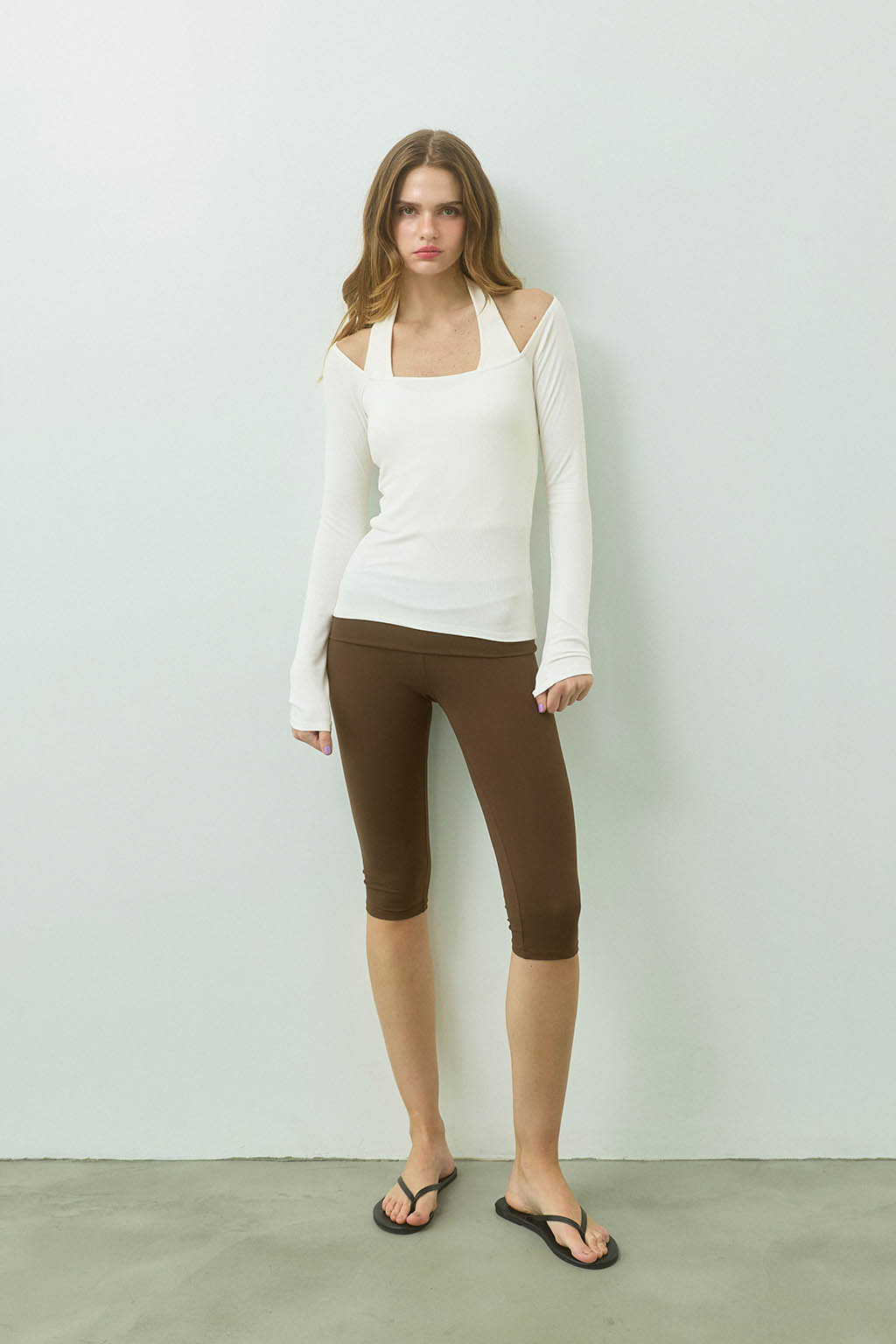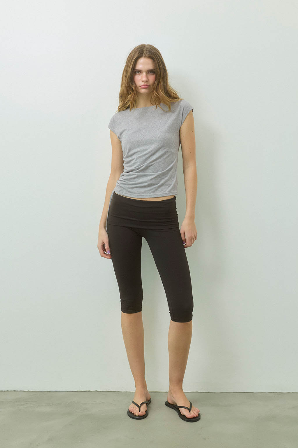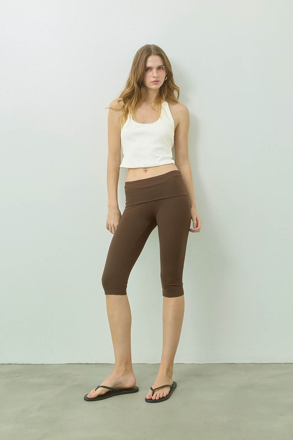 すっきりとしたレッグラインを演出する、カプリレギンス。