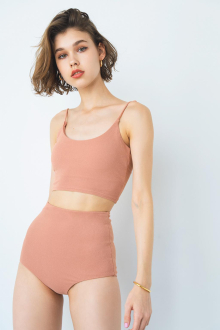 伸縮性に優れた着心地の良いフィット感と、セパレートでありながらまるでワンピース型のような安心感ある、上下セットのCecilia(セシリア)です。