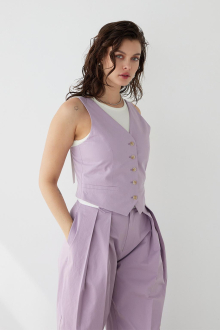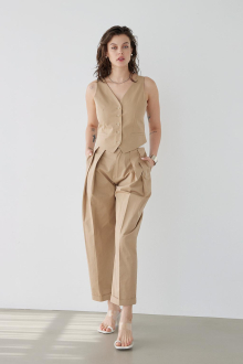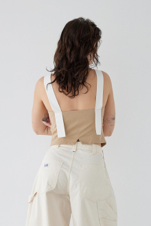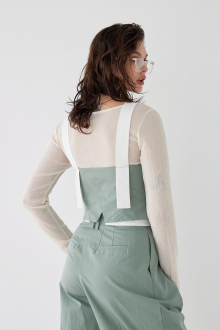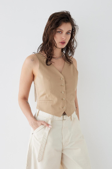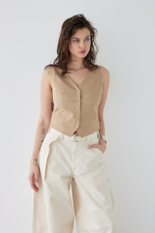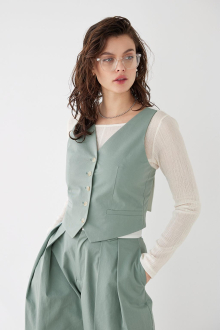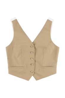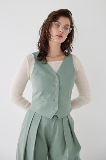 前後ろで表情が異なる、クールな印象のタイトベスト。