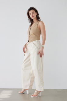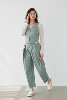 ボリュームあるボトムスとの相性が良く、Contrast Belt Tuck Pantsとセットアップでの着用もおすすめです。