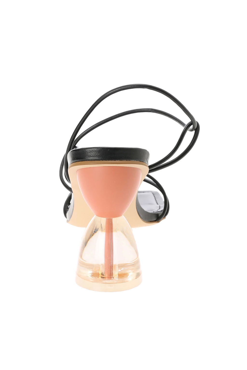クリアパーツを組み合わせた個性派ヒールのデザインとスクエアトゥで仕上げ、サイドや後ろ姿も印象的なルックスに仕上げました。