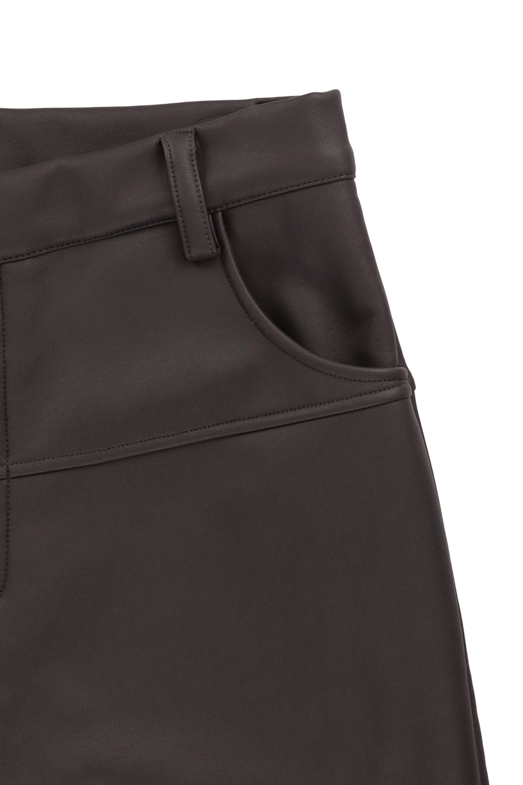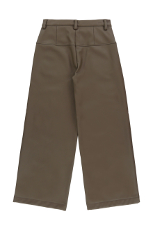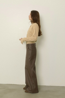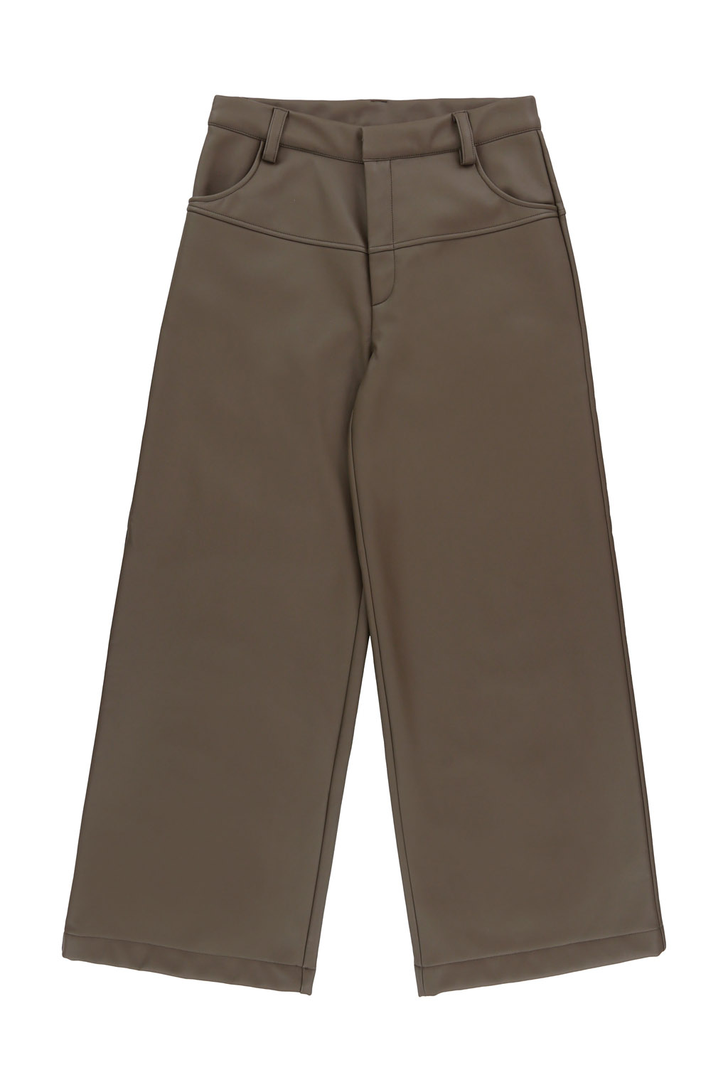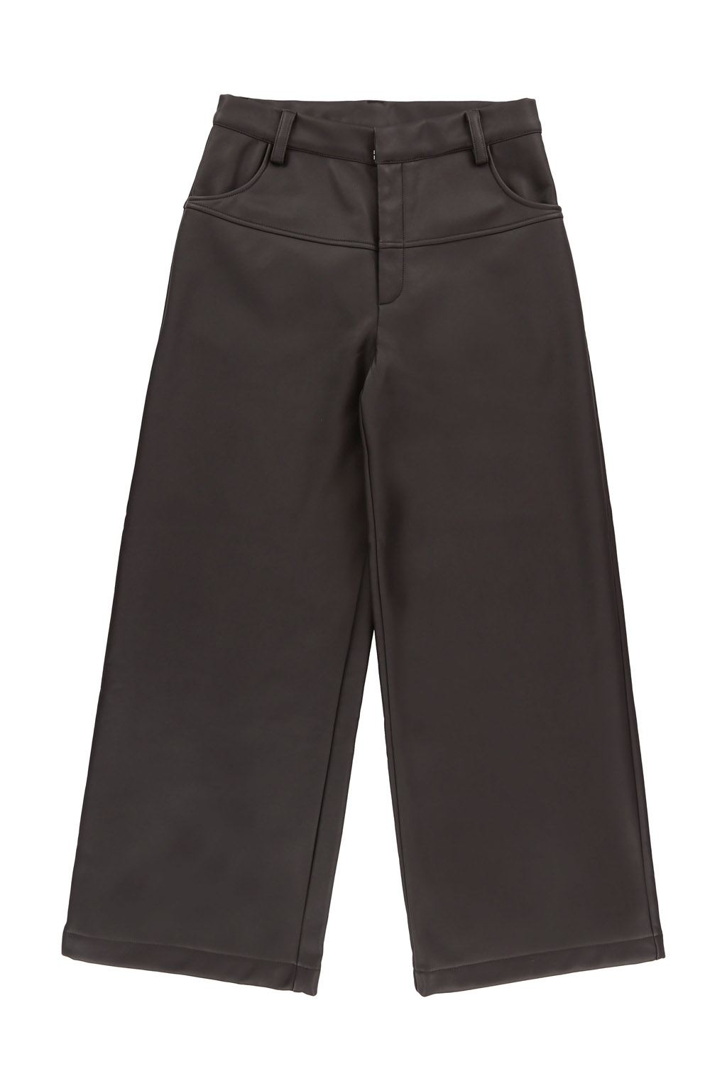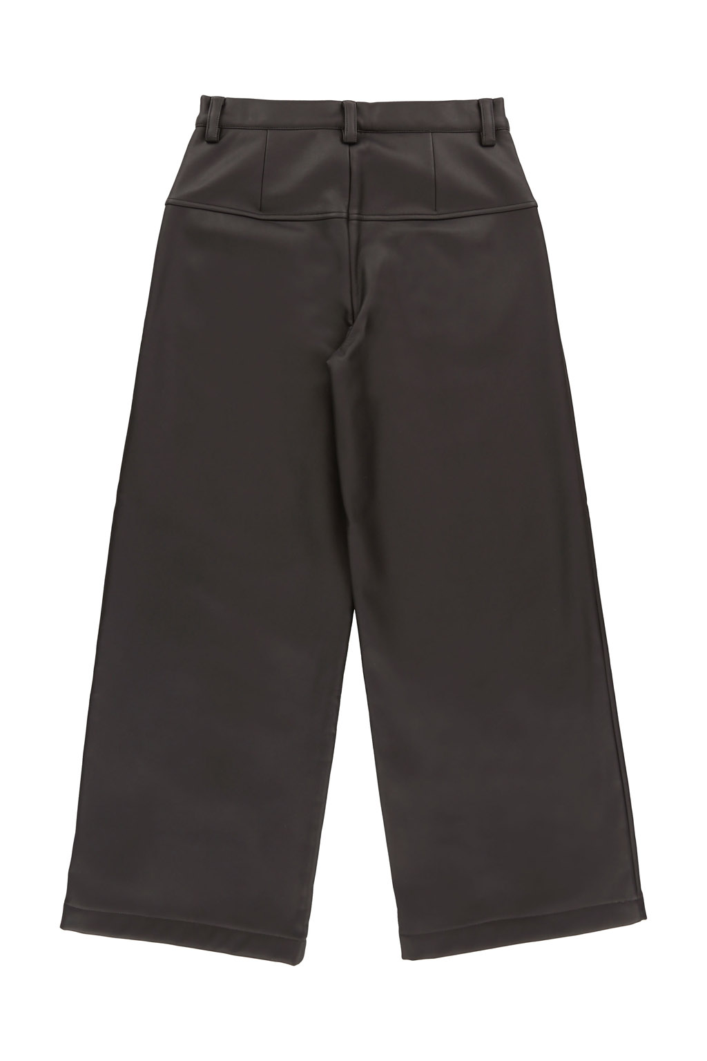 エコレザーを使用した、裏起毛ワイドラインパンツ。