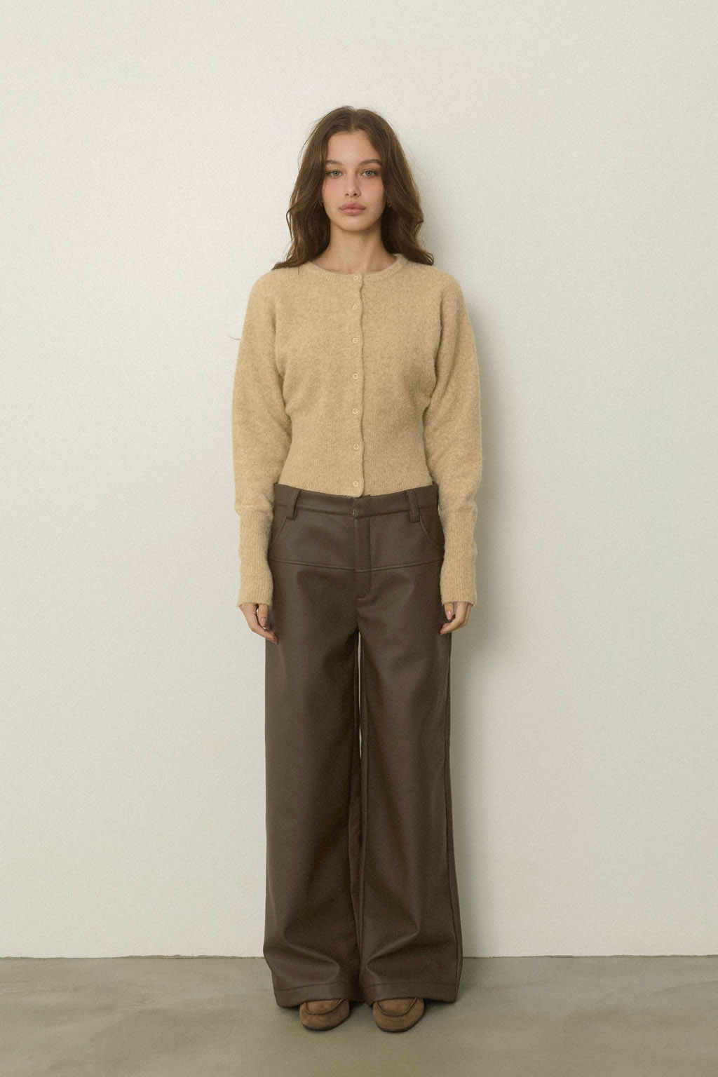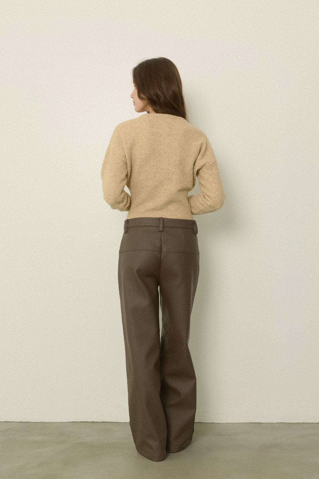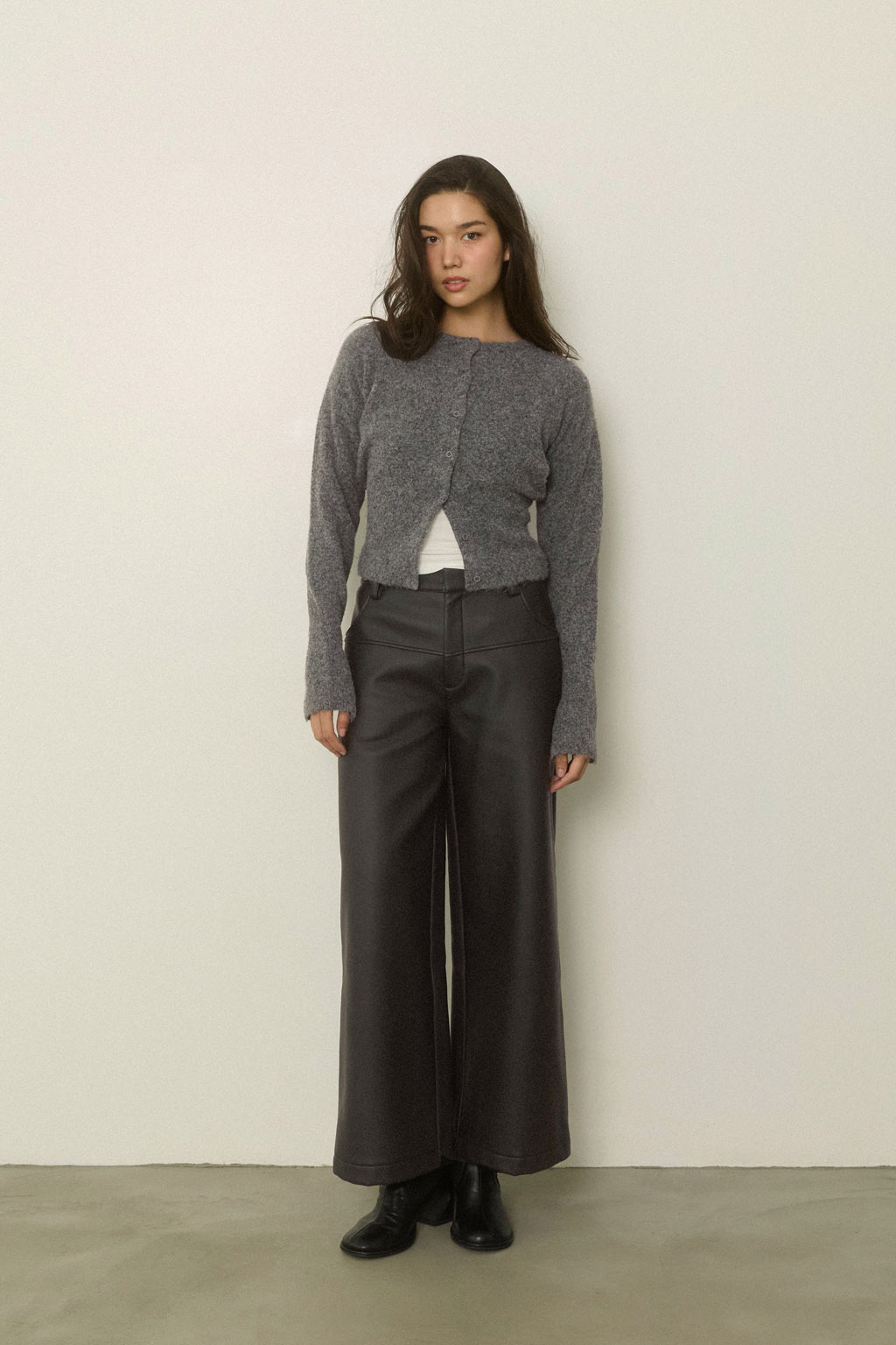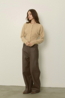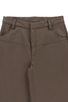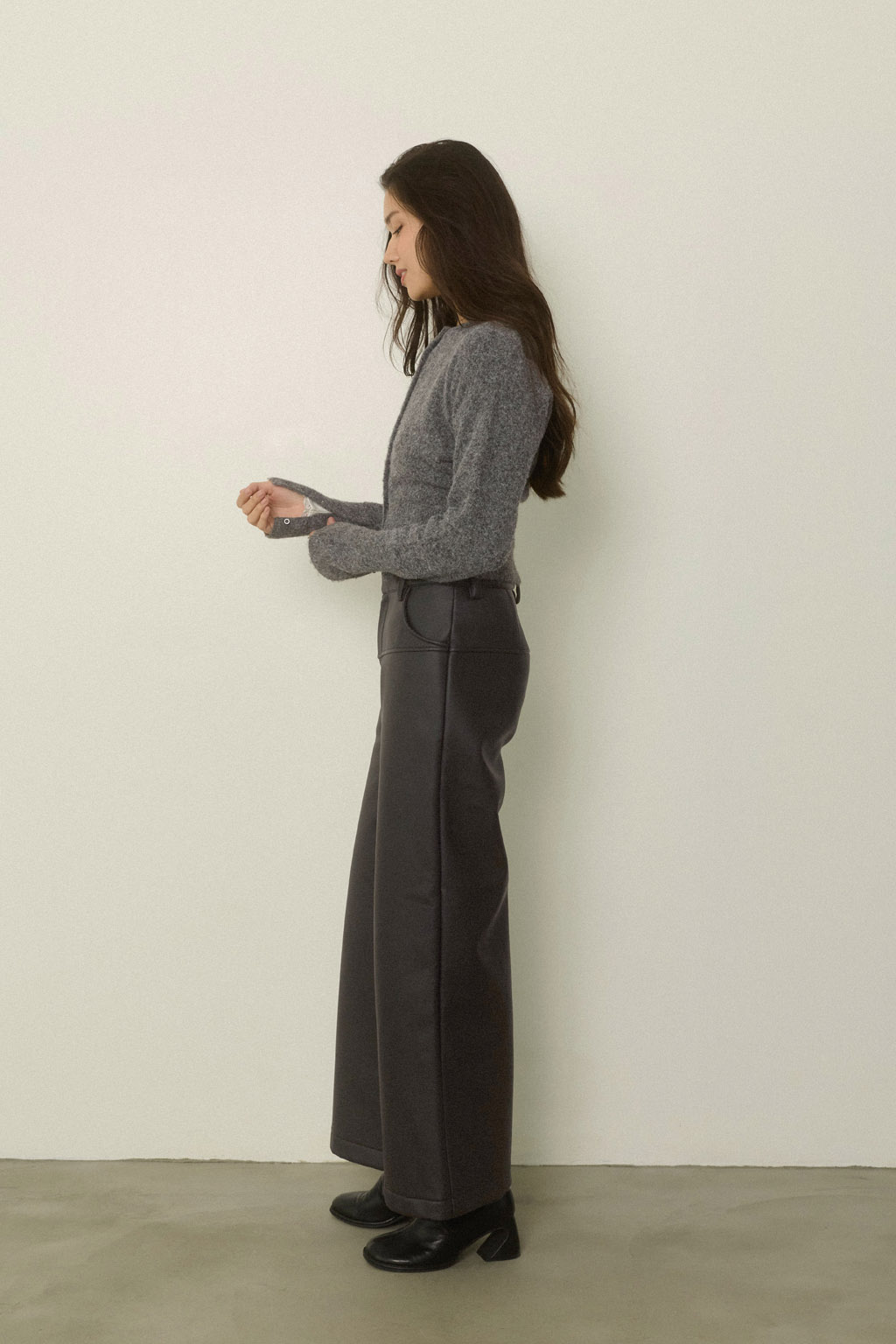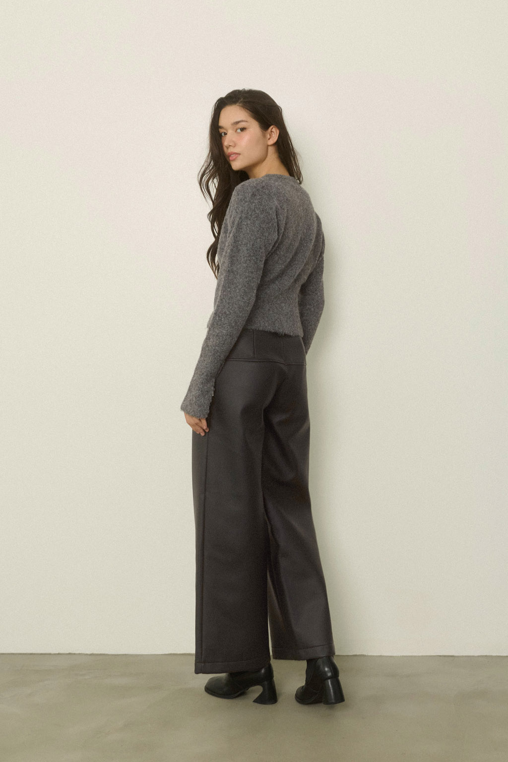 エコレザーを使用した、裏起毛ワイドラインパンツ。