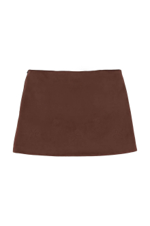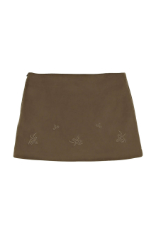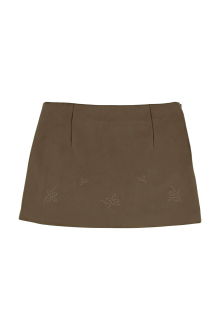 滑らかなスエード生地にさりげない刺繍デザインがコーディネートのアクセントになるスカート。