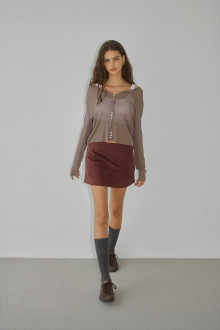 ベーシックな台形スカートはコーディネートに取り入れやすく、スエード生地がシーズンムード高まる1枚。