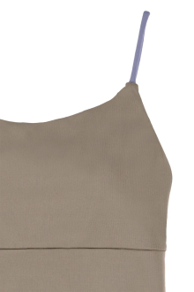 フロントはシンプルで上品ながらも、配色のストラップや大きく開いたバックデザインで華やかに。