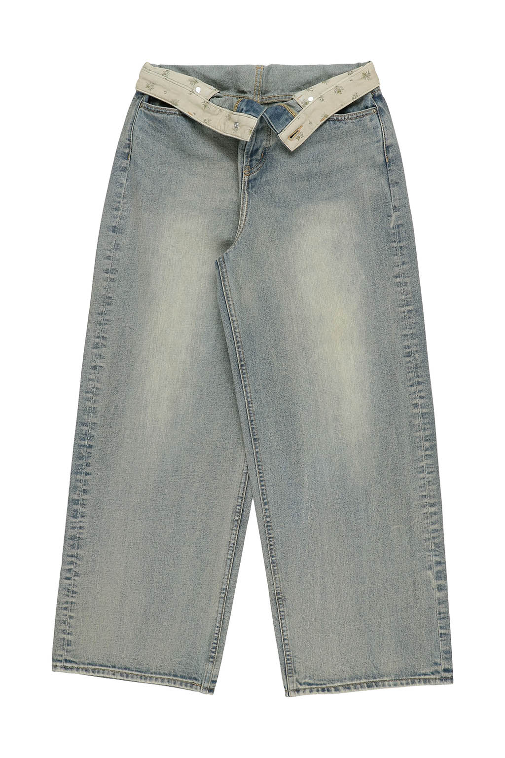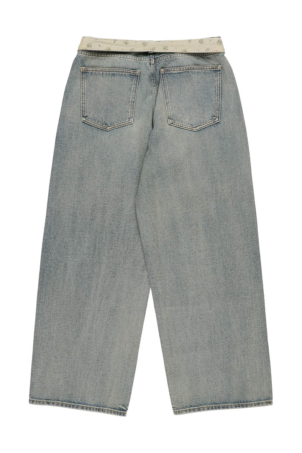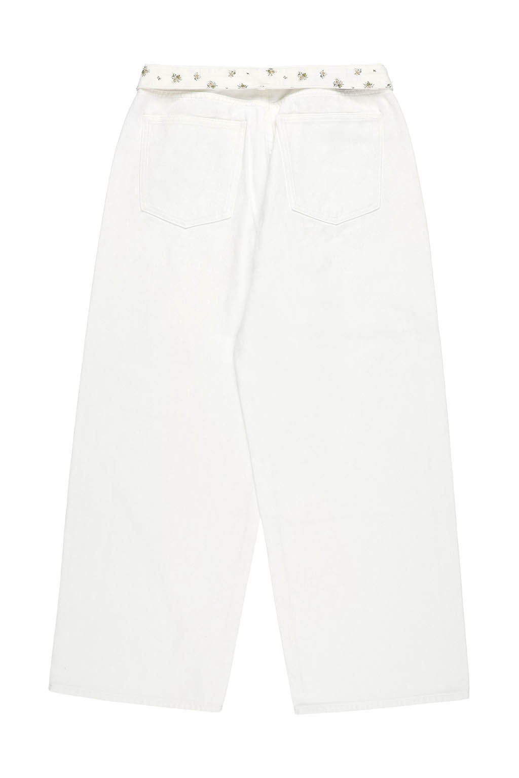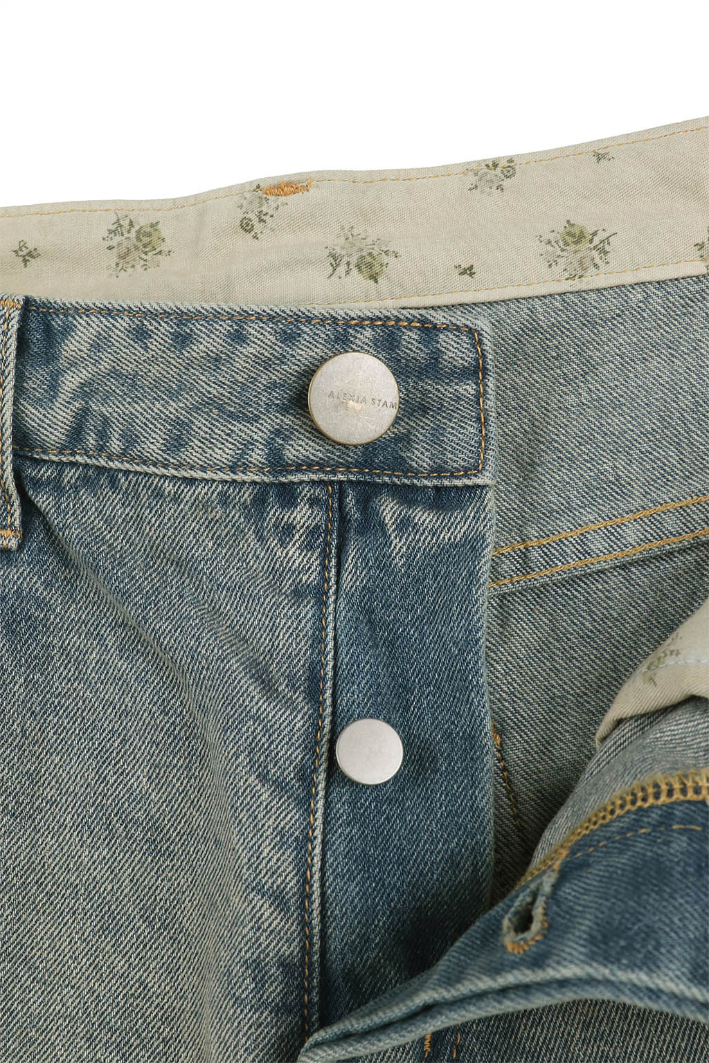 ウエスト内側にはさりげなく小花柄の生地をあしらい、折り返して柄を覗かせたスタイリングも楽しめるデザインに。