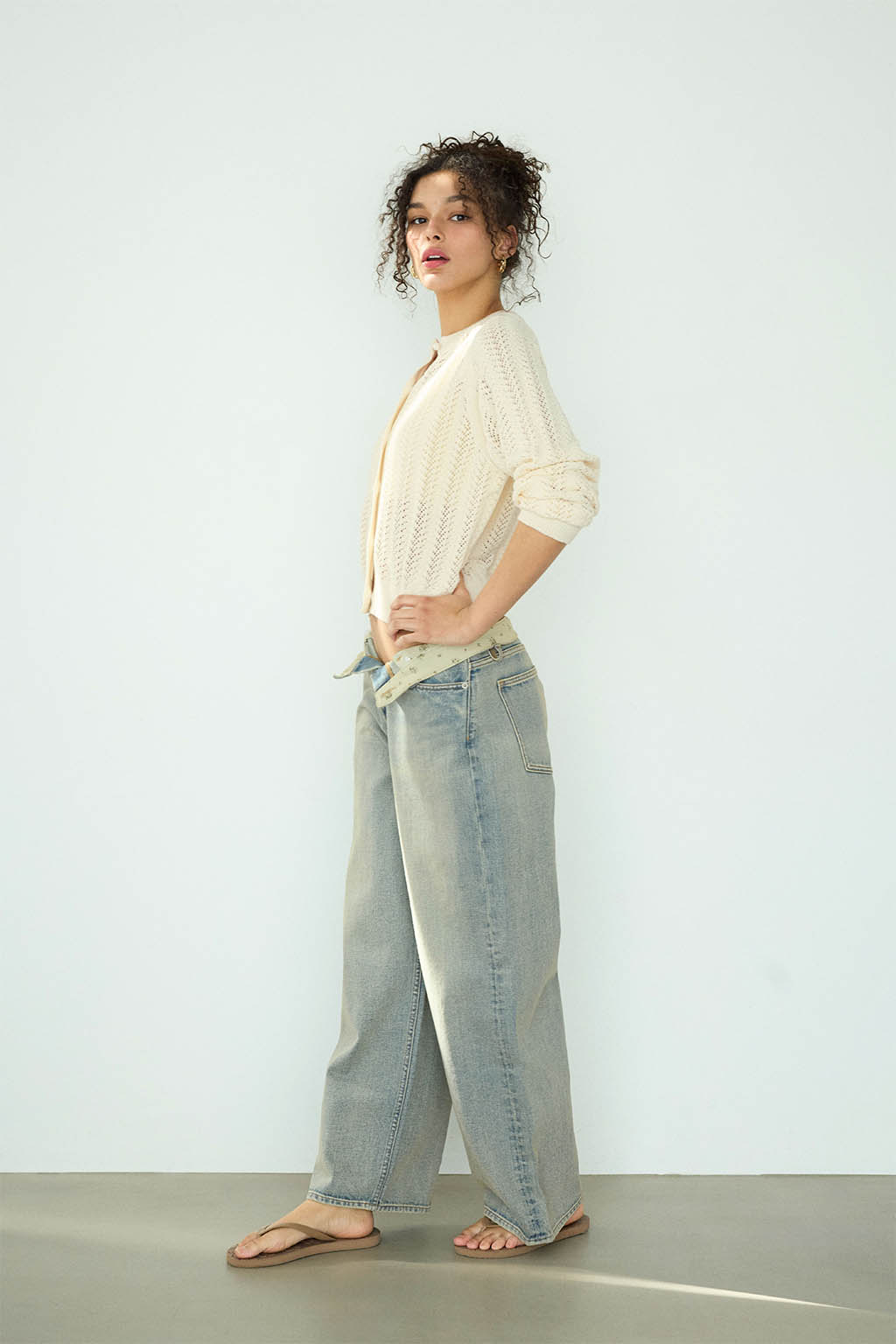 トップスをインした時や、ウエストを少し折り返した着こなしのアクセントとしても活躍します。