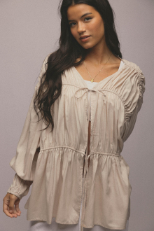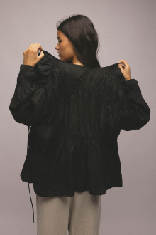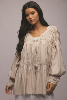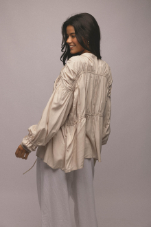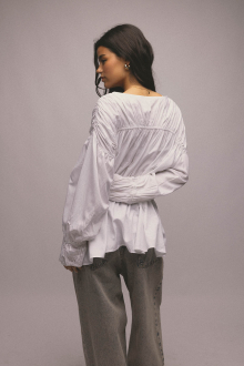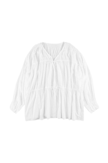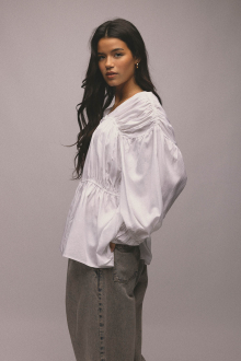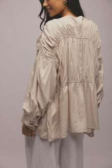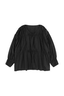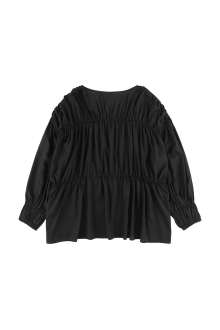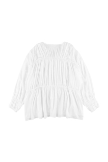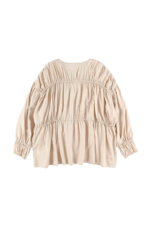 くしゅっとしたギャザーが表情豊かな印象を与えるブラウス。