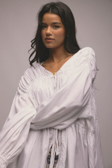 トップスとしてはもちろん、羽織りのように着用するのもおすすめ。