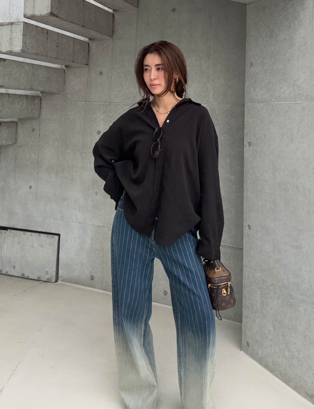 グラデーションデザインが目を惹くワイドデニムパンツ。