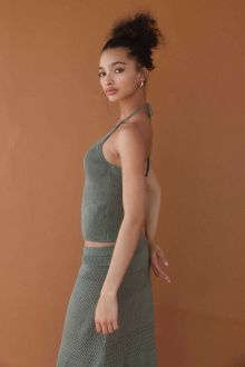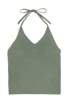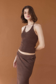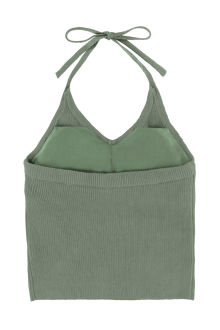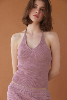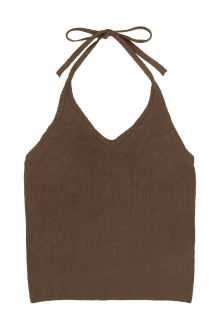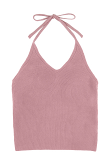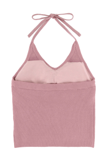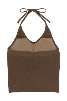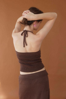 ホルターネックのバックリボンがレディなアクセントをプラスするニット。