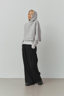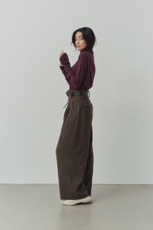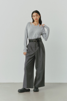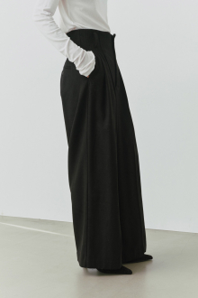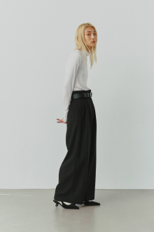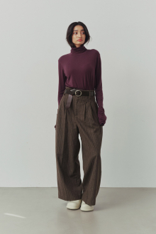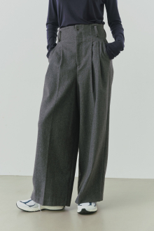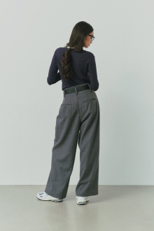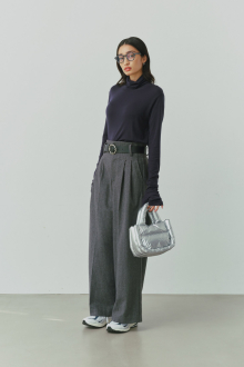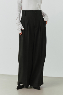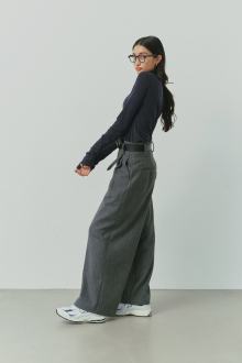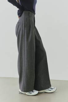 フロントにあしらわれたタックが、自然な立体感を作り出すワイドパンツ。