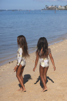 紫外線からお子さまを守り、太陽の下でも元気に遊べる、ラッシュワンピースの Honey (ハニー)。