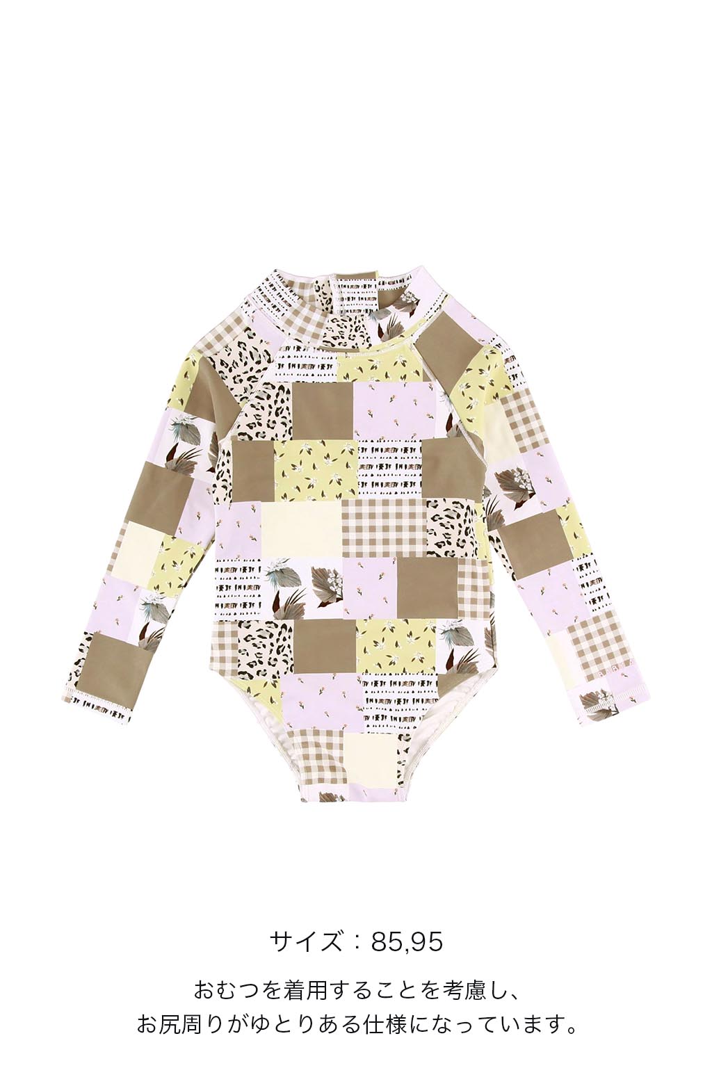 95サイズ以下は、おむつを履くことを考慮して、お尻周りがゆとりのある仕様になっています。(画像9枚目参照)