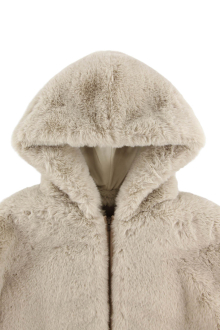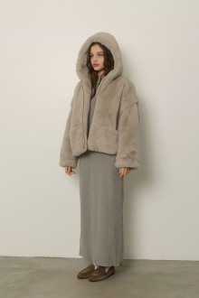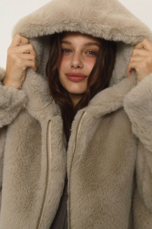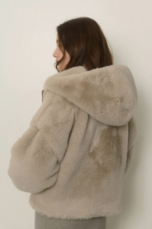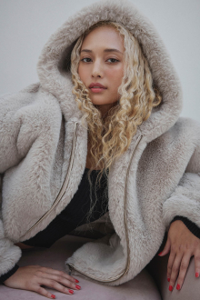 思わず触れたくなるような、上質なエコファー素材で仕立てられたジャケット。