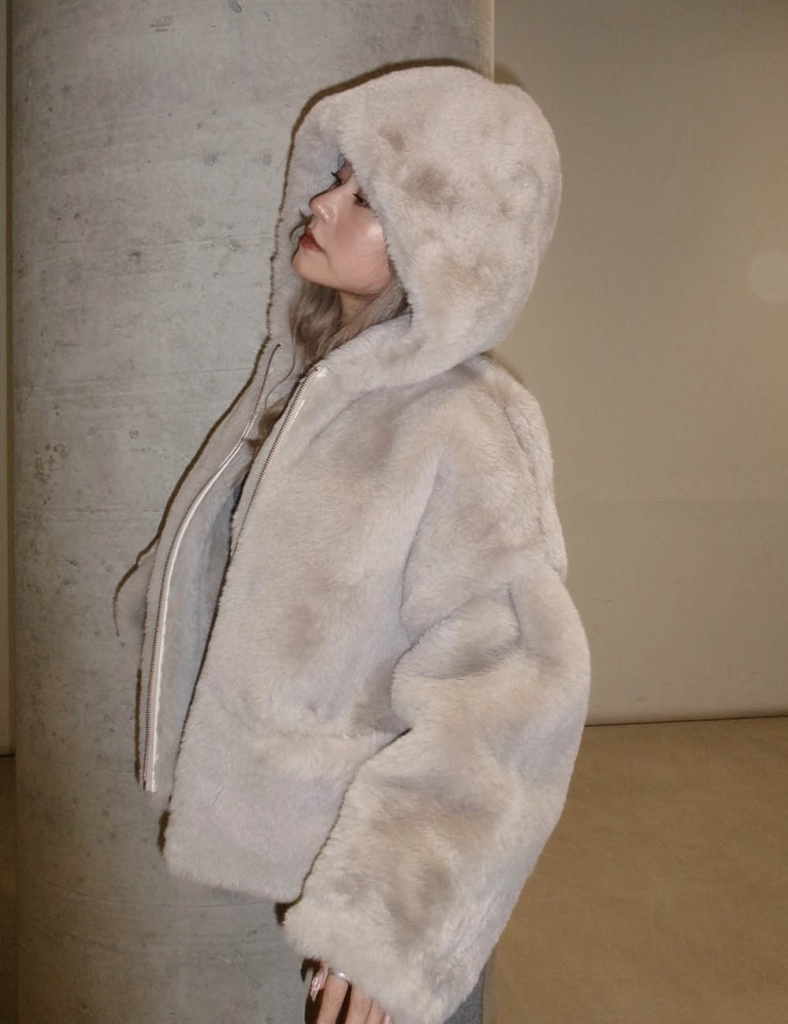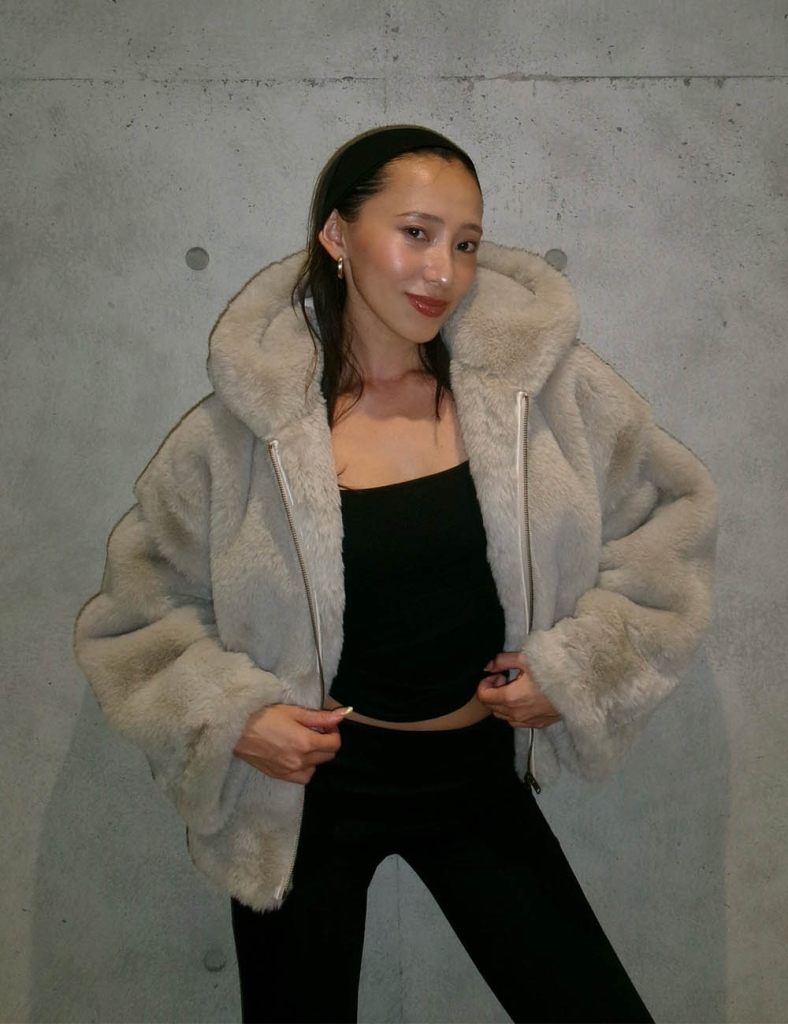 フード付きデザインで温かく小顔効果も後押しし、ウエスト位置も高く見せてくれるショート丈で、バランスよくスタイリングできるアイテムです。